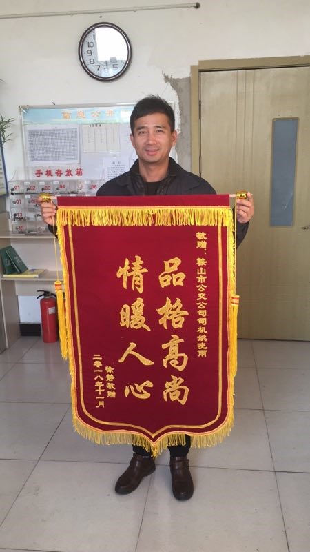 1、2018年11月16日,來(lái)了一名叫徐靜女士拿著一面錦旗來(lái)到了客運(yùn)十一隊(duì)35路快線調(diào)度室,向4110819號(hào)車駕駛員姚曉宇師傅拾金不昧的行為表示感謝。11月2日下午16點(diǎn)50分,她乘坐35路快時(shí)將一藍(lán)色布袋(內(nèi)有公章及各種證件)遺落在車上,隨后被駕駛員姚曉雨拾到,及時(shí)聯(lián)系失主并歸還。