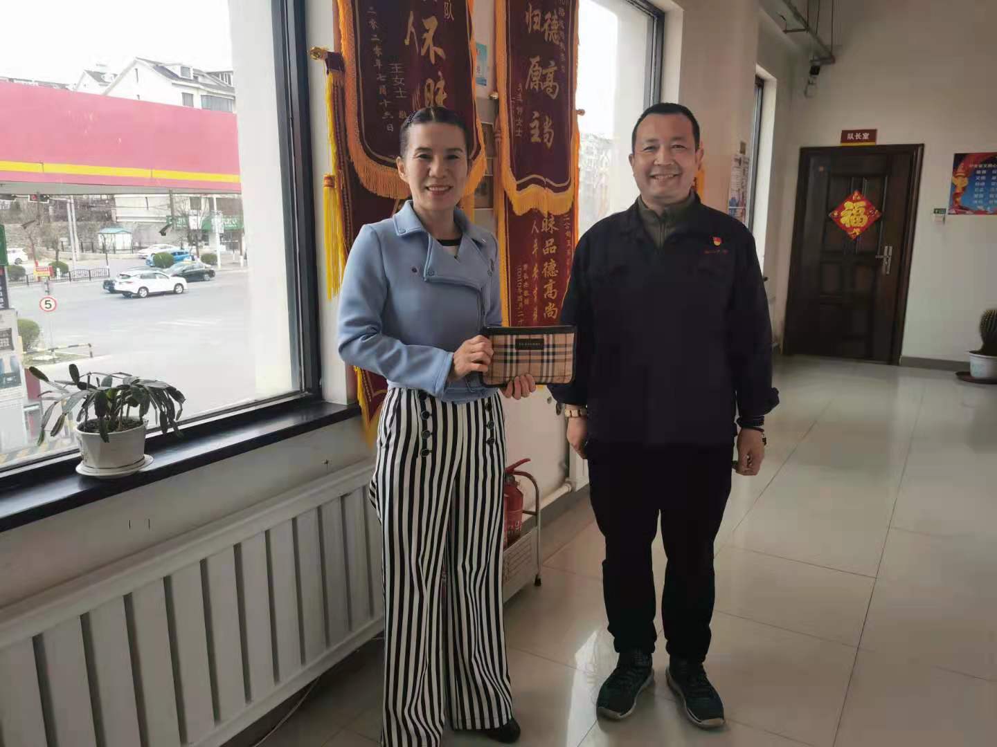 胡丹急中生智說:“撥打110試試看吧!”接線的警員非常熱心,詢問了失主徐女士的地址,回復(fù)說立即查詢和聯(lián)系屬地派出所,僅僅過了7分鐘新興派出所就打來電話,派出所的警察仔細(xì)詢問了身份證號碼,回復(fù)說立即查詢徐女士的電話,并通知她聯(lián)系路隊。又過了8分鐘,失主徐女士打來了電話,隨后她便來到了第二汽車分公司客運(yùn)五隊隊部。