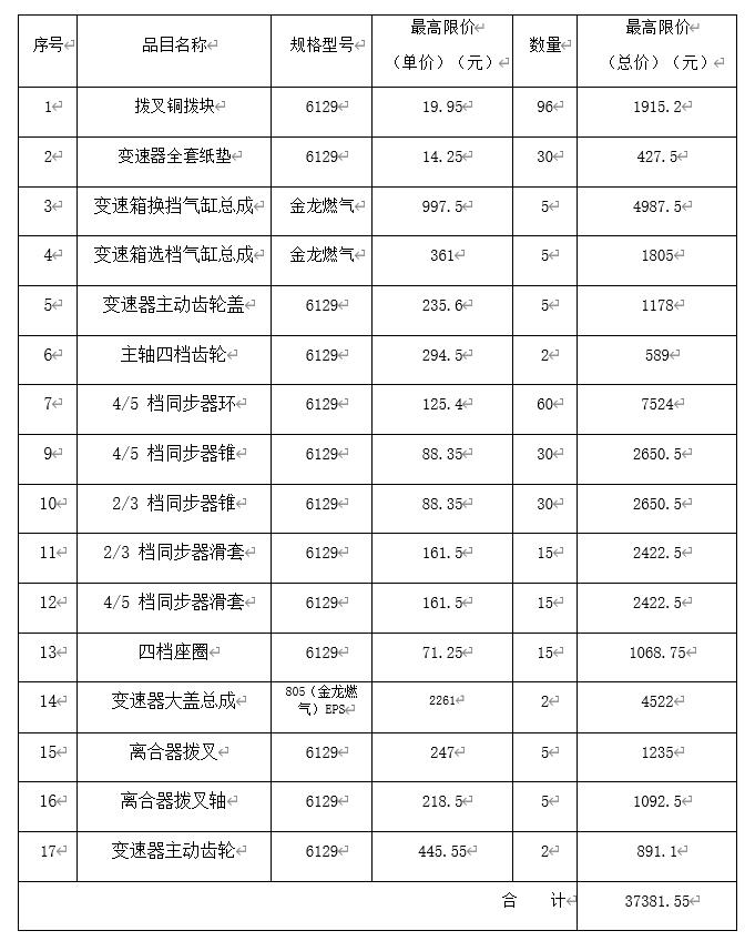 變速箱配件比價采購公告 一、采購內(nèi)容