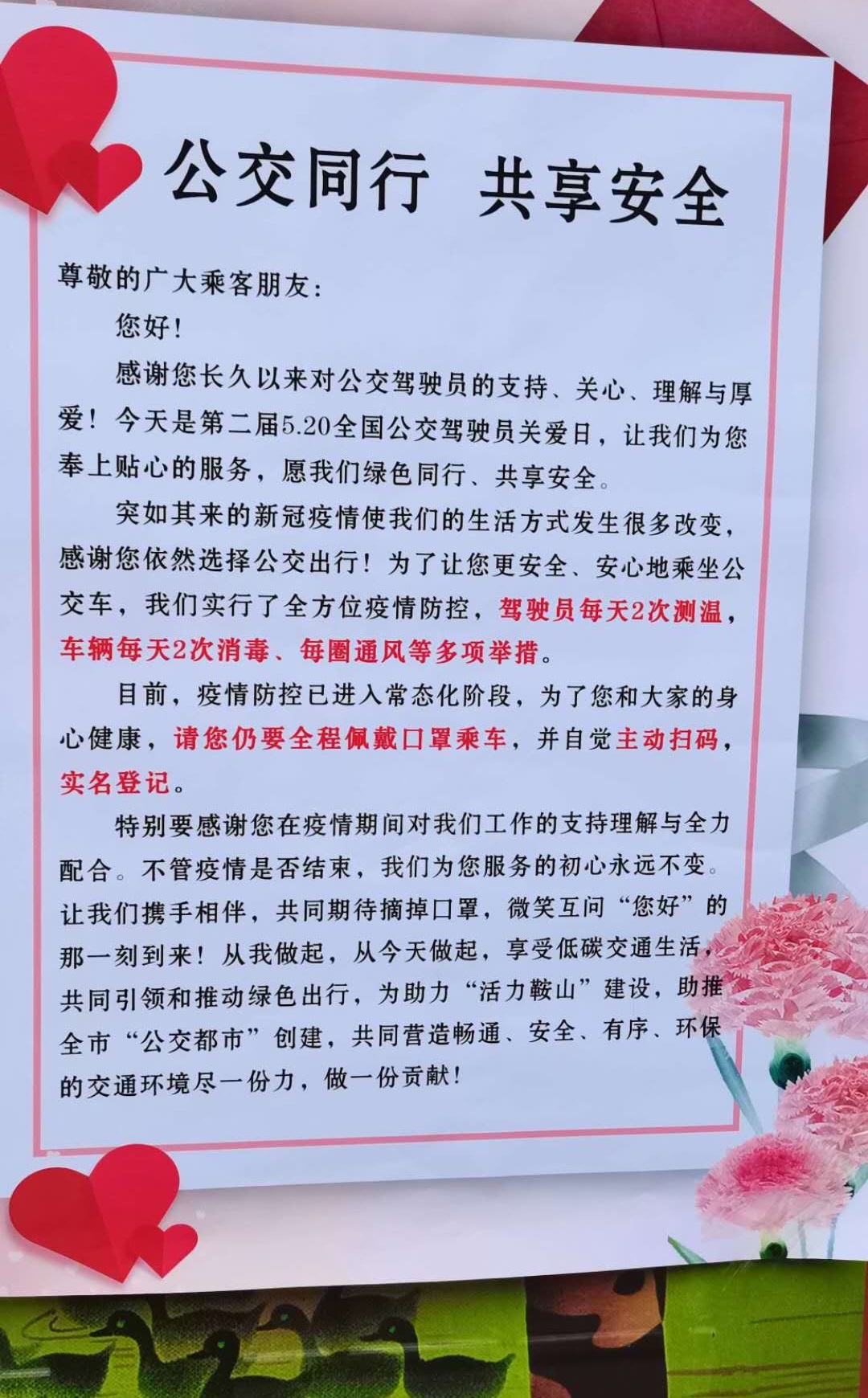很多人都知道5月20日是諧音“我愛你”,但這一天還是全國第二個公交駕駛員關(guān)愛日。       鞍山公交駕駛員謝金紅根據(jù)自己20年的公交駕駛經(jīng)驗,首創(chuàng)“321斑馬線禮讓行人法”之后,越來